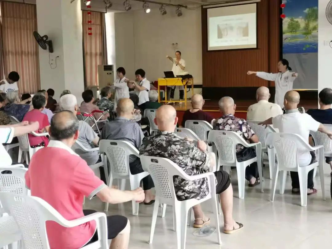 省立金山医院心理护理专科走进长乐市古槐镇敬老院进行科普宣教活动,专科护士从日常生活起居、饮食、运动等各方面为老人普及家庭保健常识,通过讲解与示范手指操、预防保健操锻炼,耐心细致地指导老人如何加强慢病自我管理,保持身心健康,享受老年快乐生活。