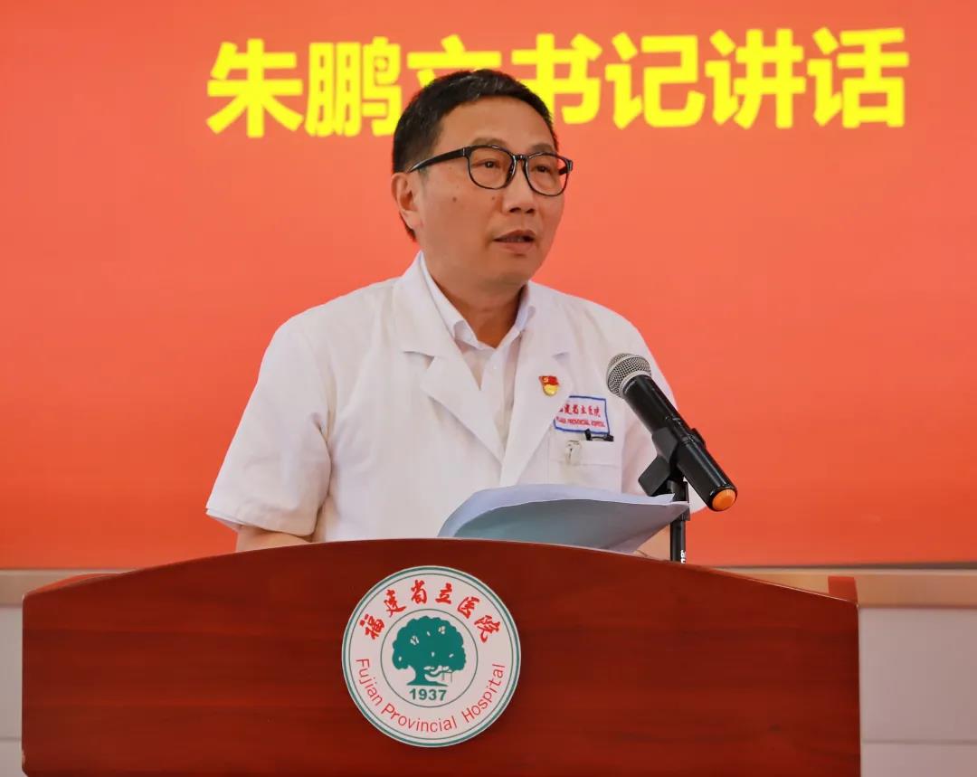党委书记、院长朱鹏立发言,代表院党委向全院各党支部和1678名共产党员致以节日的问候和崇高的敬意!他指出,省立医院的历史和今天,与建党伟业休戚相关,与强国大计心脉相连。伴随着我们党100 年的铿锵步伐,省立人80多年来薪火相传,砥砺前行,奋勇登攀,在高质量发展的道路上烙下了一代代省立人的梦想和脚印。朱书记要求,奋斗百年路,开启新征程,我们要学史明理,学史增信,学史崇德,学史力行,坚持用习近平新时代中国特色社会主义思想武装头脑,凝聚医院发展动力。
