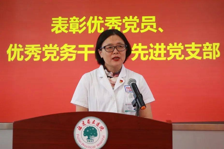 ▲郑铭同志宣读《中共福建省立医院委员会关于表彰优秀共产党员、优秀党务工作者和先进党支部的决定》