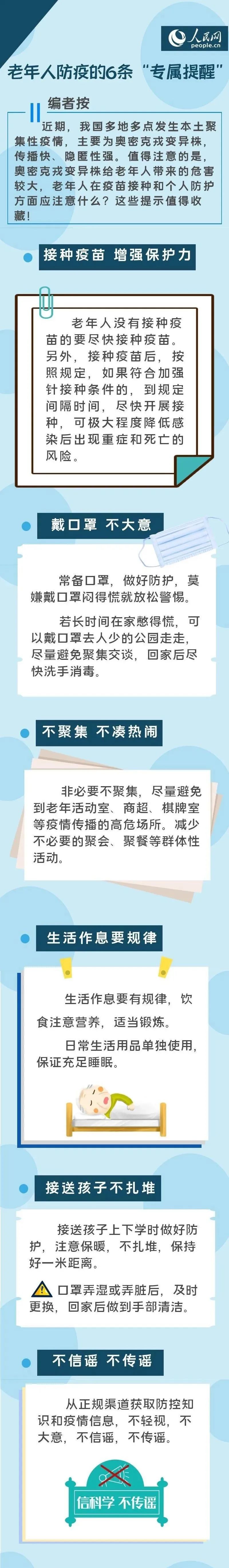 疫情防控不松懈|送给老年人的6条防疫“专属提醒”