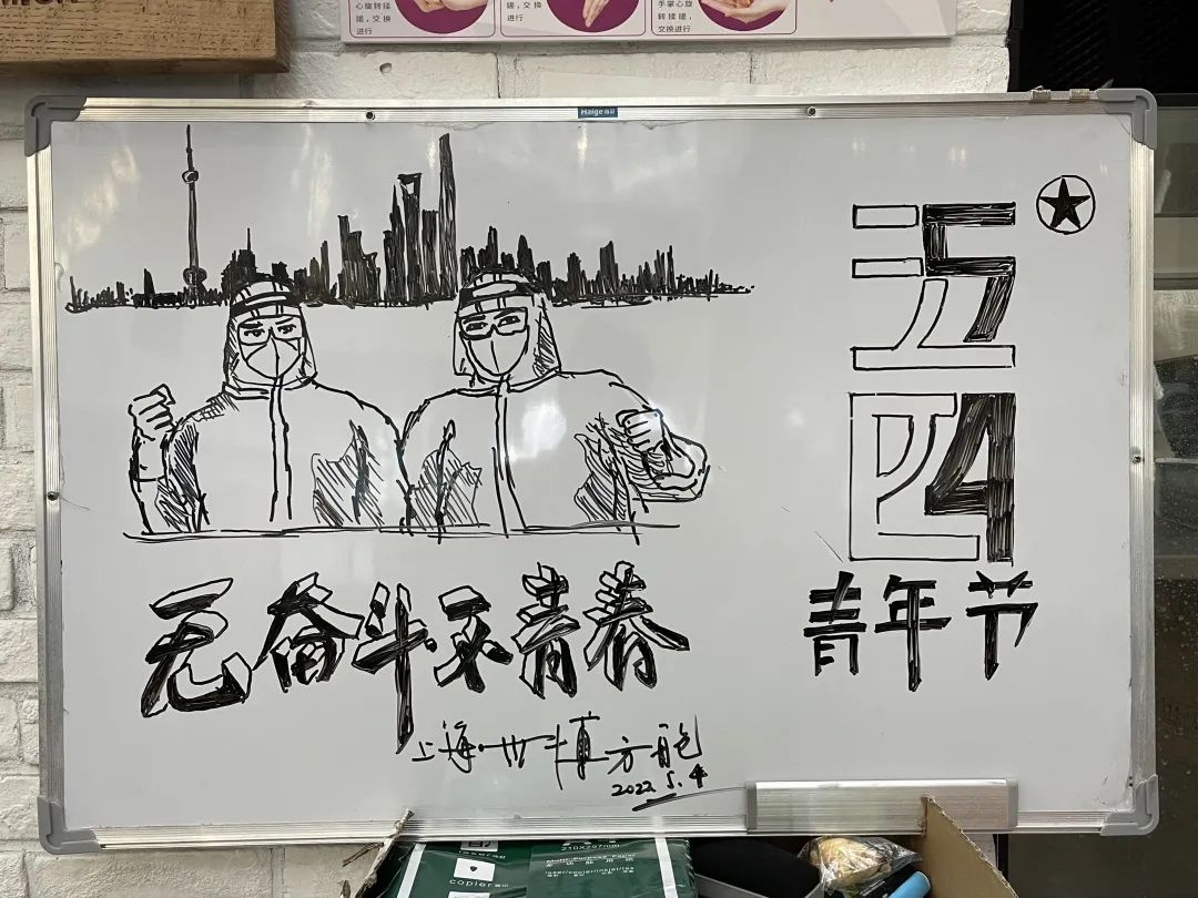 ▲正奋战在上海世博方舱医院的省立援沪医疗队队员林春锦作画致敬青春