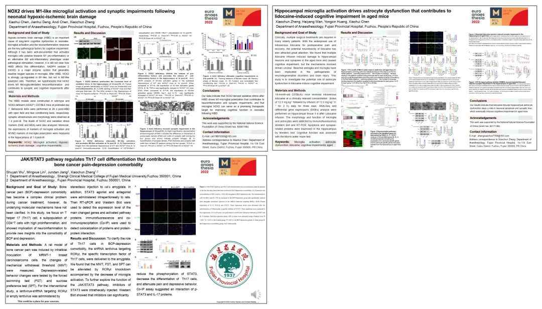 近日,作为全球最具影响力、学术水平最高的麻醉领域会议之一的欧洲麻醉学术年会(ESA)在意大利米兰召开。我院院领导、麻醉与围术期临床医学中心主任郑晓春教授团队7篇论文入选大会壁报展示及会议交流。
