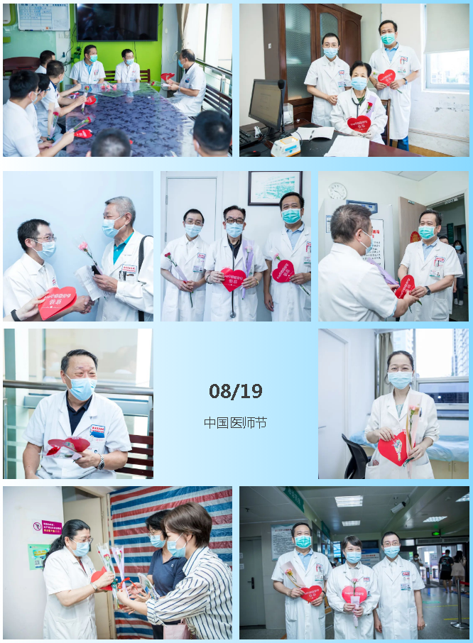 由中国医师协会联合各省医师协会共同开展的致敬活动,向医师代表送上鲜花和祝福。院长陈刚与省医师协会副会长、我院翁国星教授,共同走访慰问,为坚守在临床一线的医师们献花,送上节日的祝福。许多候诊患者,也纷纷加入献花祝福行列,用微笑和赞誉,向医师们表达敬意!