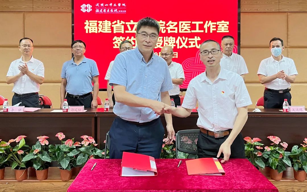 会上,朱鹏立书记指出,省立医院与武夷山公立总医院合作历史悠久,是我院协作关系最紧密、帮扶模式最多元化的县域医院。近年来,在武夷山市委、市政府以及卫健主管部门的正确领导与大力支持下,在两家医院领导班子和学科团队的共同努力下,武夷山公立总医院成功跻身全国县域医院领先梯队。“名医工作室”将开启两院新的合作共建模式,将重点帮扶学科内涵建设和人才梯队培养,着力打造具有品牌影响力的区域重点专科,强力推进武夷山公立总医院高质量发展。
