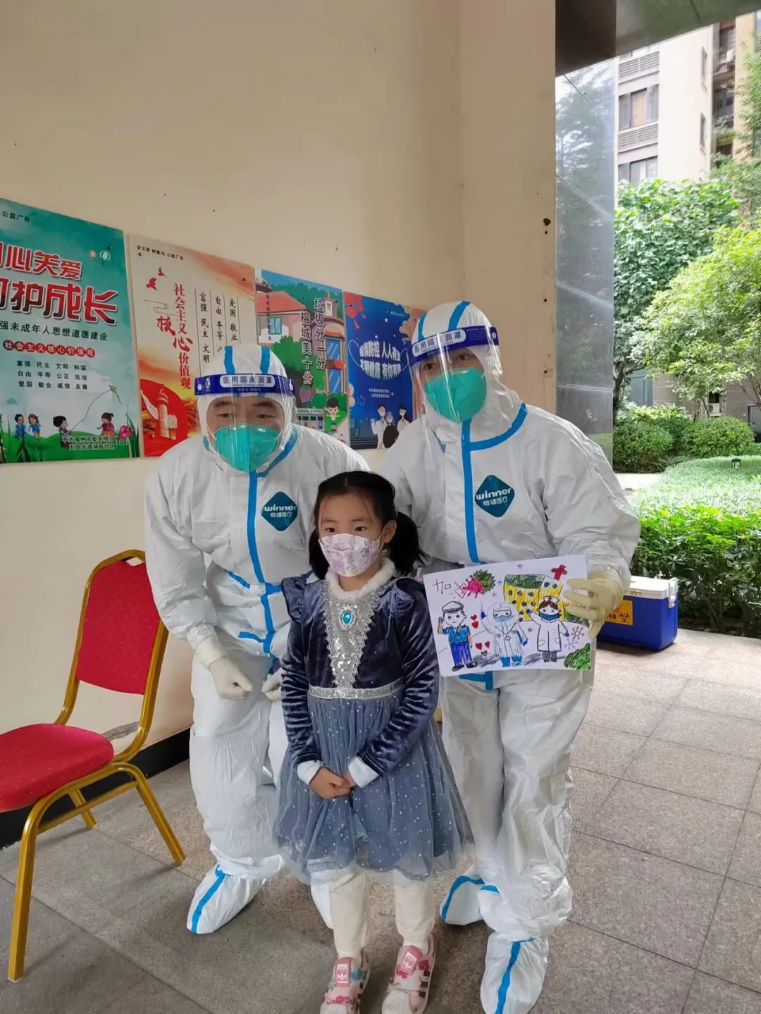 医务人员在温泉社区做核酸采样时收到小朋友送的加油爱心图,幸福满满。