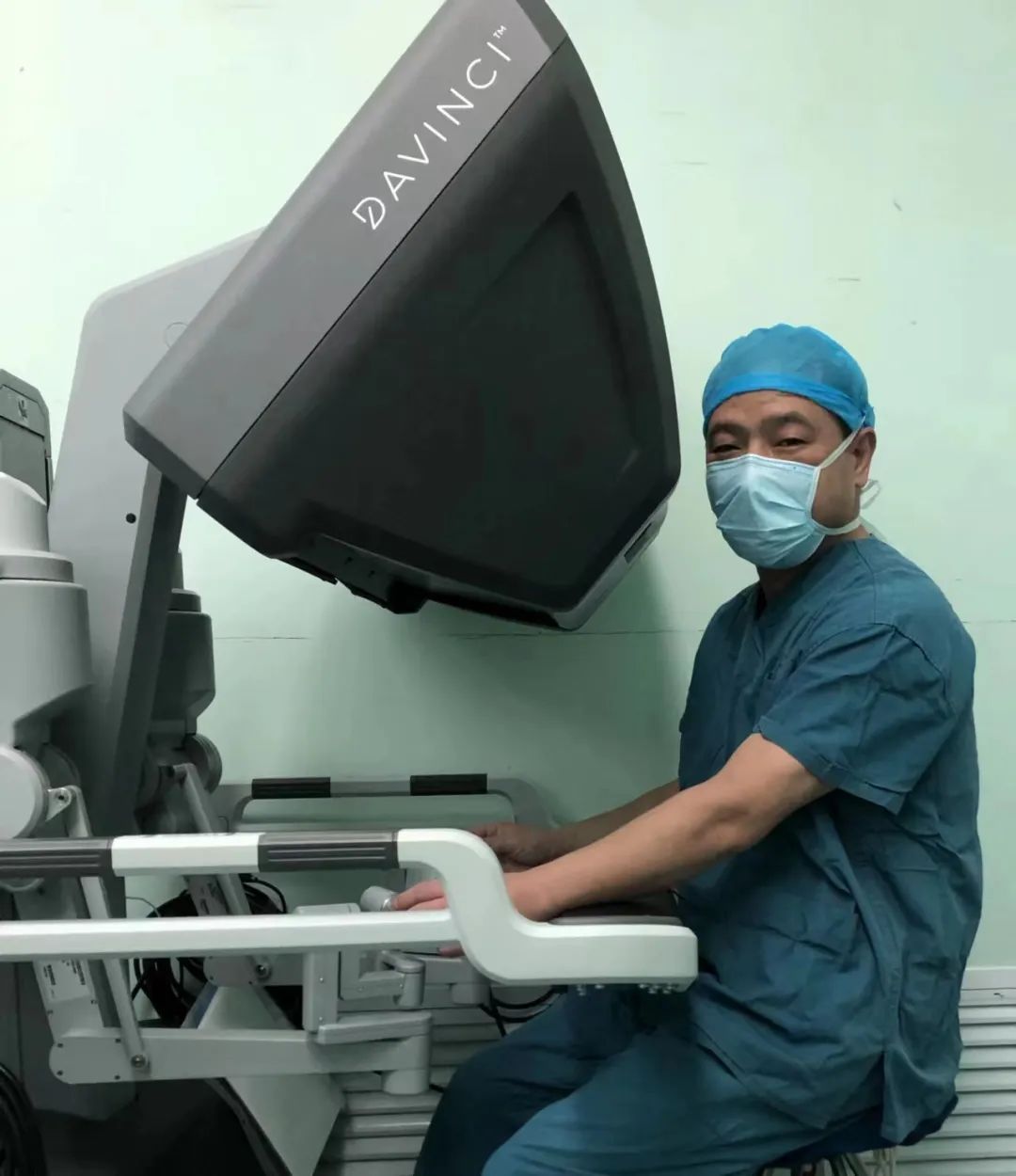 ▲朱庆国主任医师进行机器人手术操作