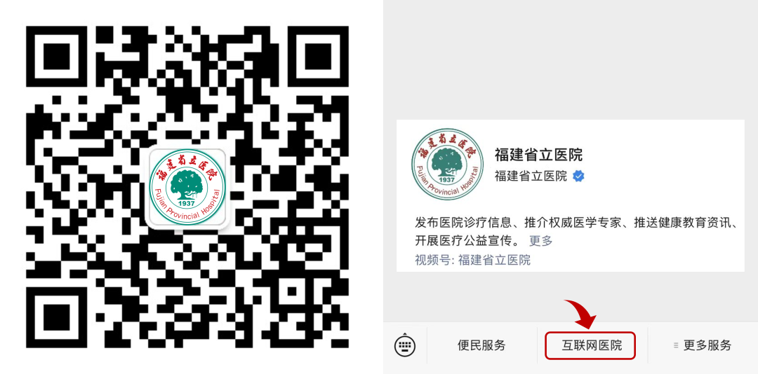 关注“福建省立医院”服务号,点击页面下方“互联网医院”,添加就诊卡,或选择已绑定的就诊卡。