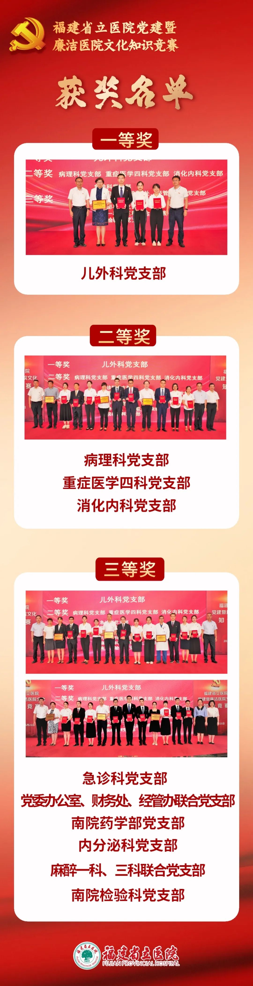 此次大赛特邀省直机关工委组织部部长邱振光、驻福建省卫健委纪检监察组常务副组长林雄、省卫健委宣传处处长黄守勤、省直机关团工委书记王星、省卫健委直属机关党委副书记林宇波、省肿瘤医院纪委书记余宏玉、省老年医院纪委书记陈婷担任评委。我院党委书记朱鹏立,党委副书记、院长陈刚及在家院领导,党支部书记、党员、职工、医学生代表等200余人到场观赛。