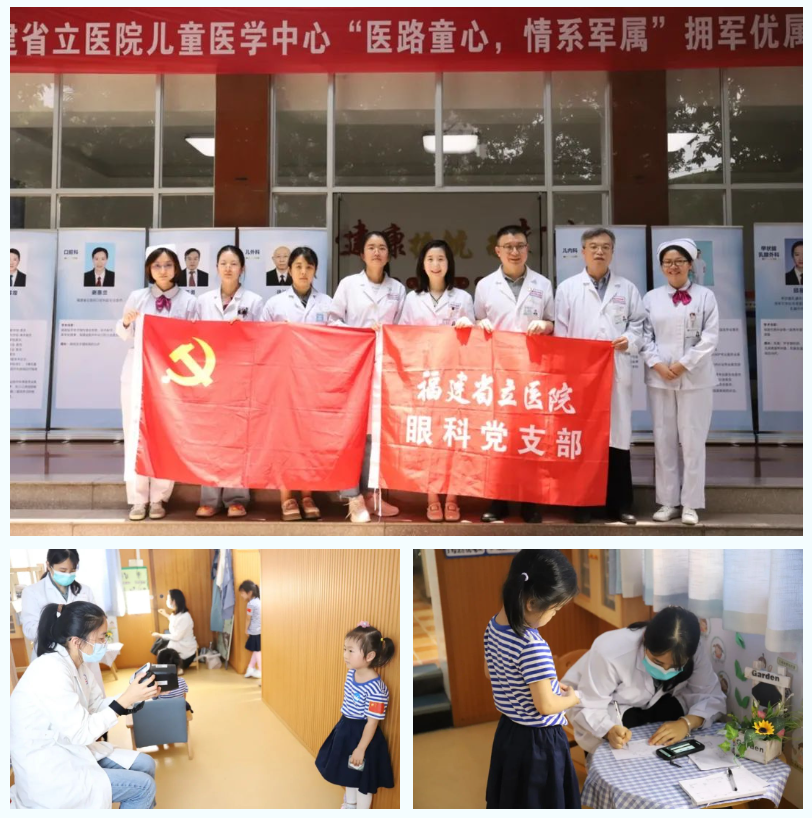 陈晗、洪思缘、林钰雯三位青年医师走进海军幼儿园,参加了儿童医学中心主办的“医路童心,情系军属”大型义诊活动,为近200名小朋友进行视力和屈光检查,并耐心解答家长的咨询。