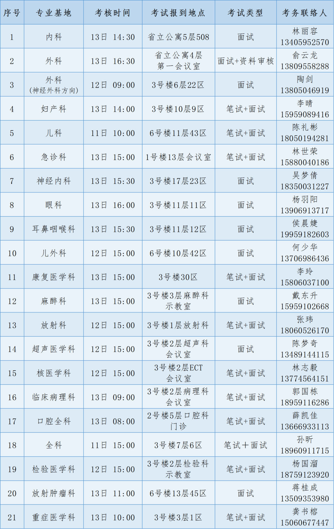第一志愿招考时间为7月11-13日,地点为东街院区,各专业具体考试时间、地点、考核类型见下表,更多招考注意事项见医院官网通知/info/24578.jspx。