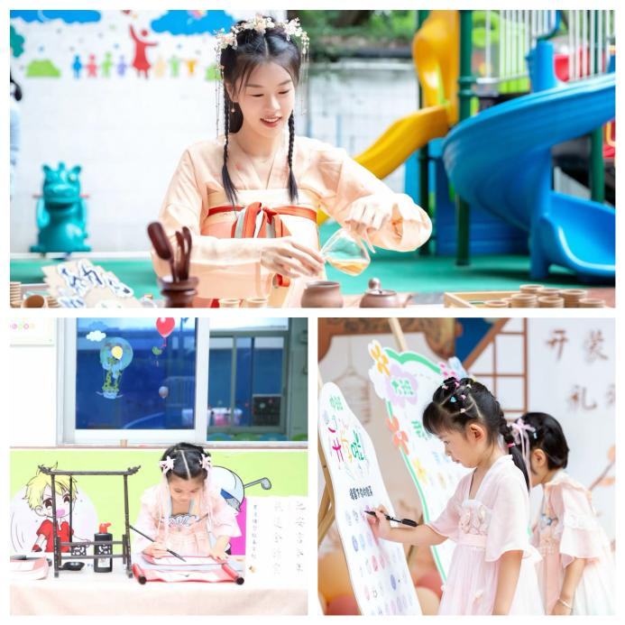 2023年9月1日,幼儿园以“开蒙启智 礼润童心”为主题,以“正衣冠-朱砂启智-以茶为礼-击鼓明志-点卯-开笔添智-赠福礼”等环节让孩子感知中国传统文化的魅力,传承中国传统文化,以饱满的热情迎接新学期的到来。