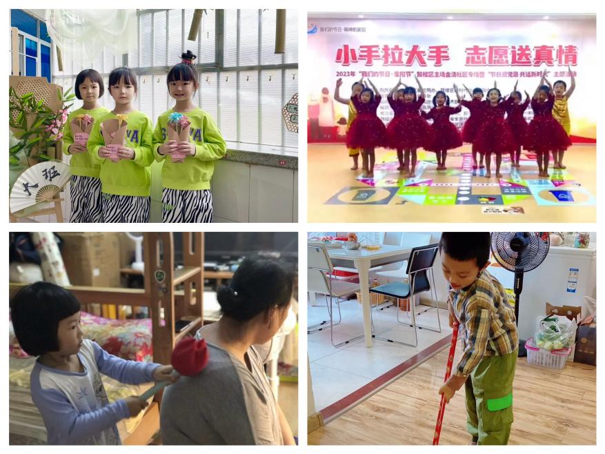 10月23日,农历九月初九是我国的传统节日——重阳节,又称为:敬老节。为了让小朋友们从小知晓尊老爱幼的传统美德,学会感恩。 幼儿园组织开展了“爱在金秋 情暖重阳”主题活动,通过“我为长辈做件事-满满爱意小惊喜-好听儿歌送给您”等系列活动,让孩子更好地了解重阳节是孝老的节日,从小培养要怀感恩之心,懂得“尊老、敬老、孝老”的意义,将中华民族的传统美德代代传扬。