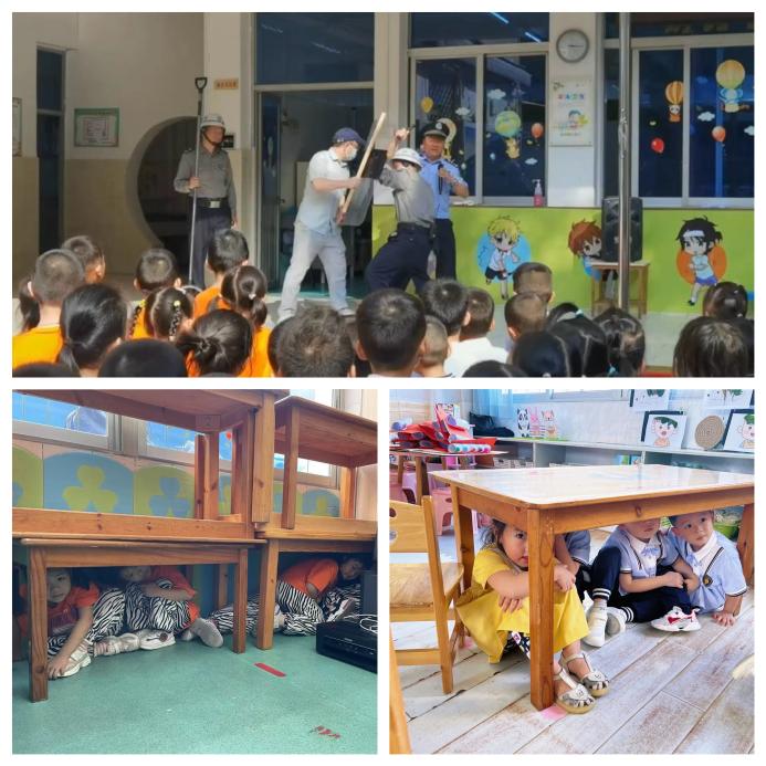 10月25日,为了保障幼儿在园的人身安全,进一步提高教职工抵御外来侵害行为的能力,培养幼儿自我保护的意识。幼儿园开展了“演中成长 练中防护”的防恐防暴演练活动,在“歹徒”和警官的配合下演练顺利进行。