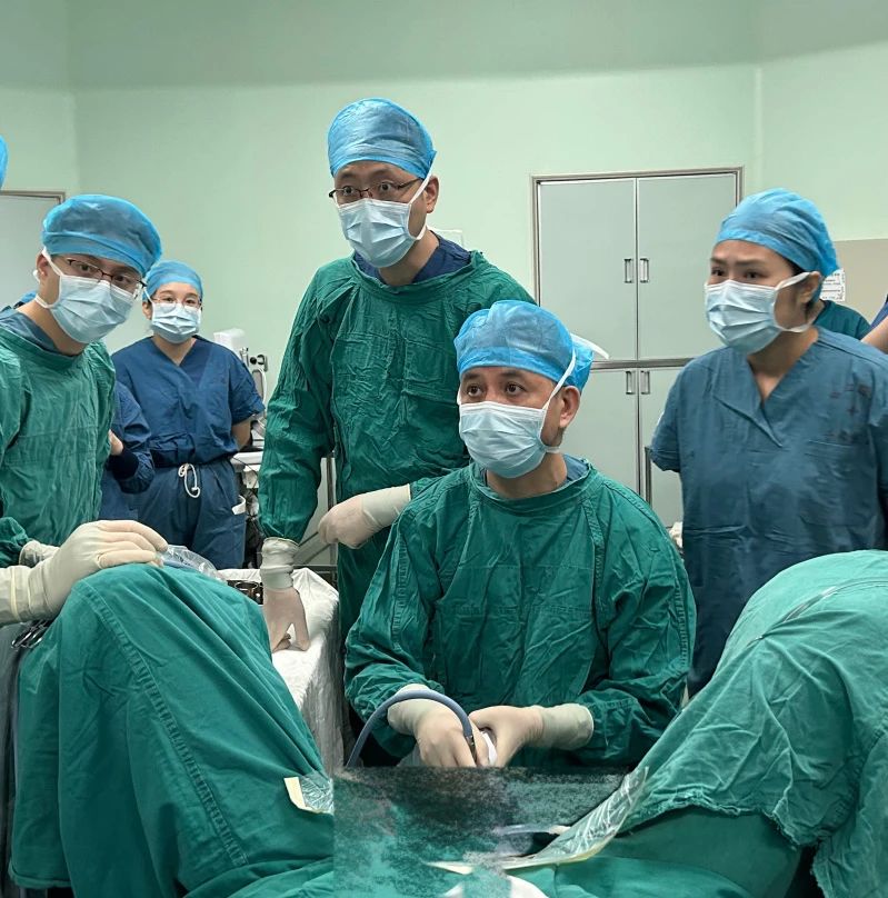 ▲叶烈夫教授、吴进锋副主任医师团队正在进行手术操作