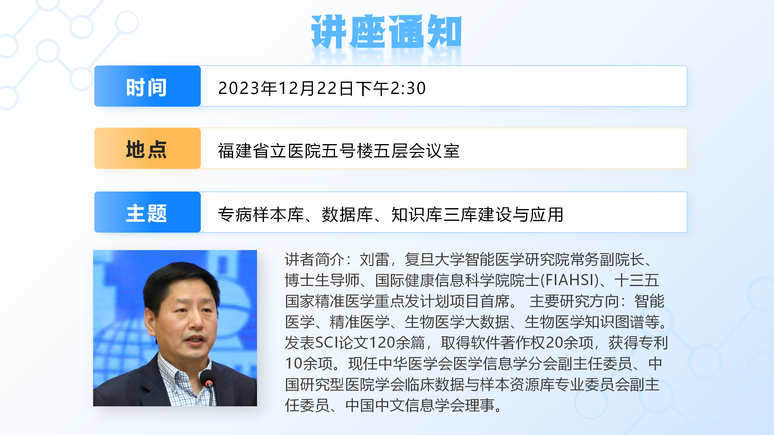 [讲座通知]专病样本库、数据库、知识库三库建设与应用(2023年12月22日,周五,下午2:30)