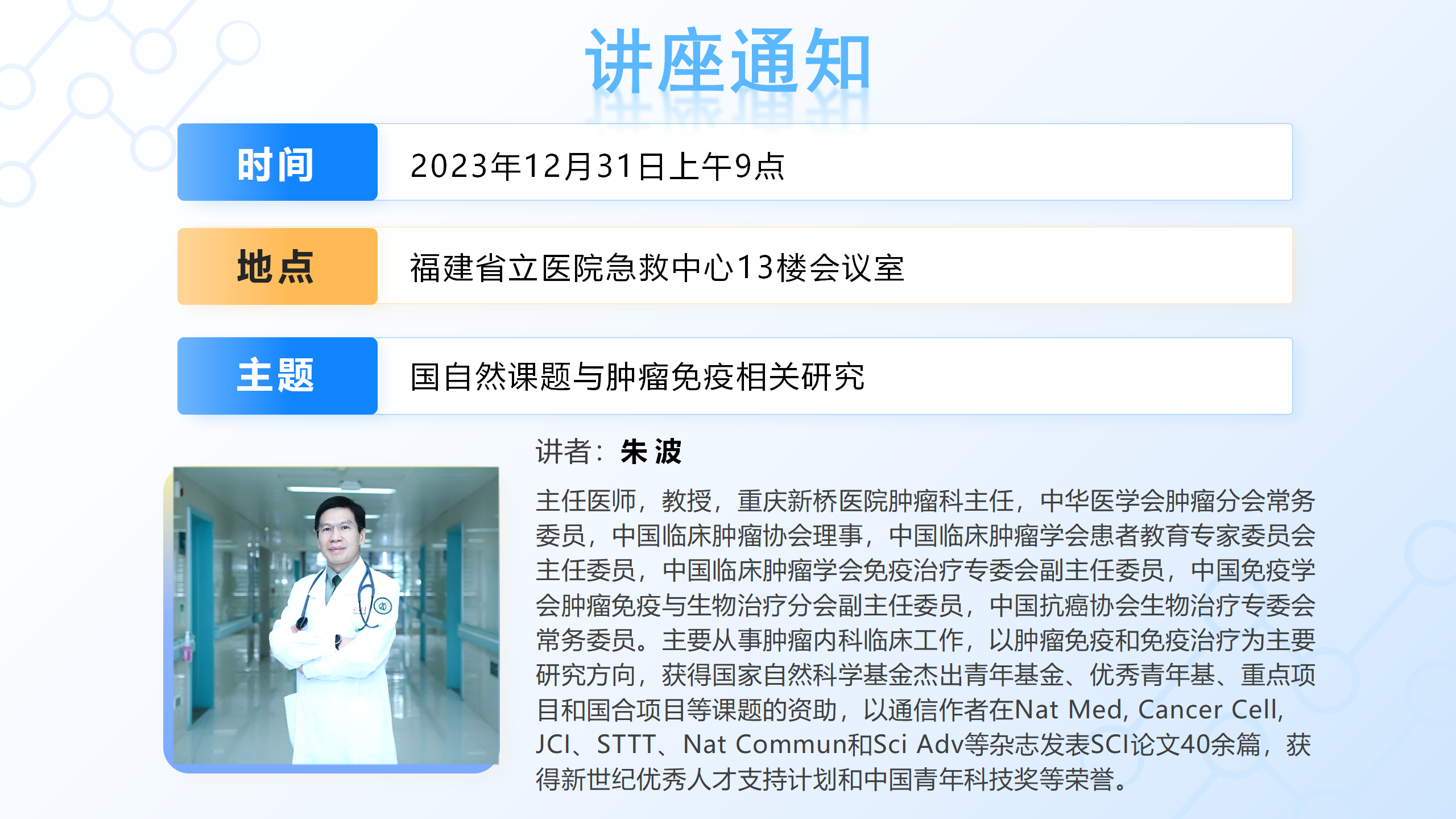 [讲座通知]国自然课题与肿瘤免疫相关研究,2023年12月31日(周天)上午9点