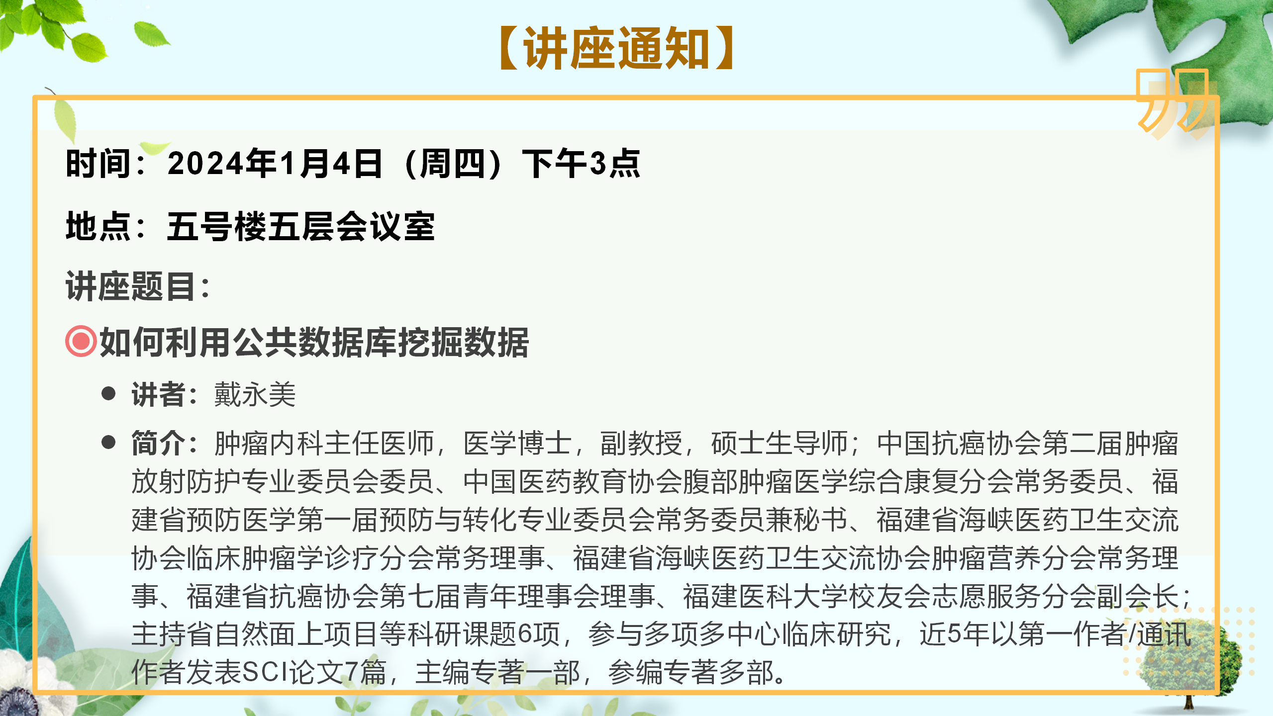 [讲座通知]如何利用公共数据库挖掘数据,2024年1月4日 (周四) 下午3点