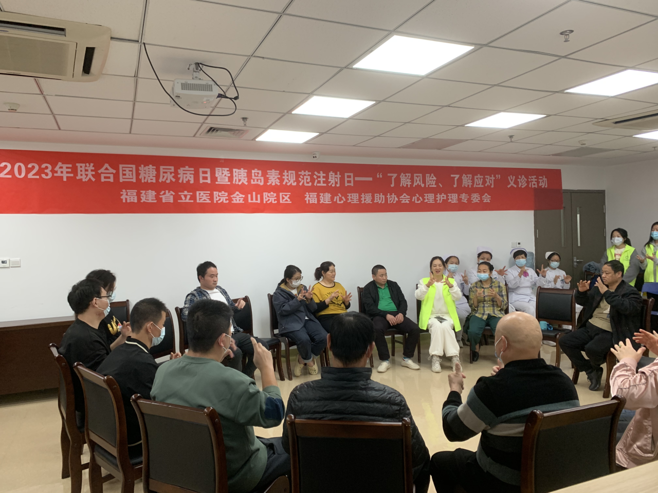 在“联合国糖尿病日”来临之际,福建省立医院金山院区内分泌科、糖尿病护理专科、心理护理专科联合福建心理援助协会心理护理专委会开设专家义诊、饮食指导、胰岛素注射指导、糖尿病并发症体验、心理护理等五大专区,群众们仿佛置身“健康科普游园会”,通过亲身体验,提高自身对糖尿病的防治意识。