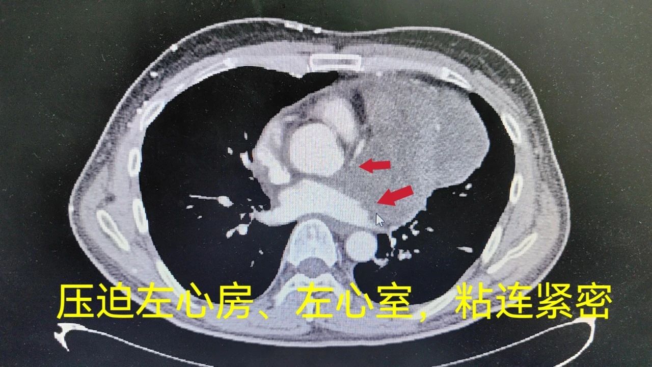 患者是一位中年男性,因胸闷、气促症状严重,紧急入院求医。经过详细检查,医生发现患者的胸骨后方部位有一个近20cm的大肿瘤,该肿瘤不仅突破了心包,挤压左心房、左心室,与主动脉、肺动脉关系十分密切,而且肿瘤已突进入上腔静脉内并完全堵塞了上半身血液回流。此类病症较为罕见且复杂,需要高度专业的医疗技术和严谨的治疗方案。“相当于高速公路遭遇山体滑坡,完全堵了!他现在上半身血液回流心脏只能靠走小路了。”接诊的张振龙副主任医师说。