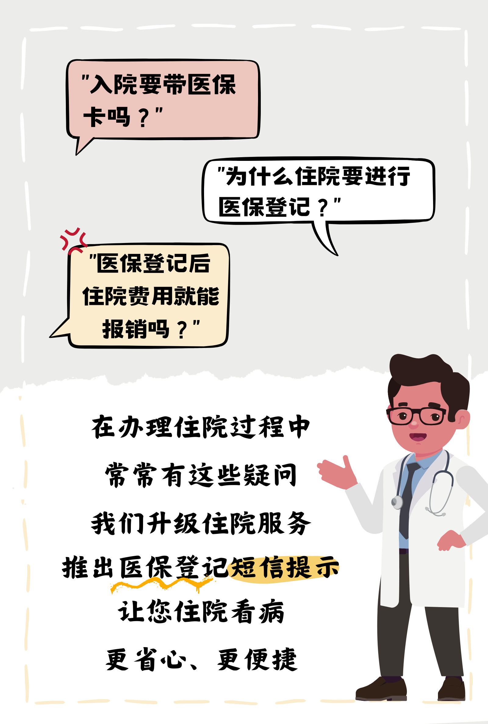 对于已办理入院1-2日还未进行医保登记的患者,系统将推送提示短信,提醒您及时进行医保登记,让您就医更放心,医保报销更便利。