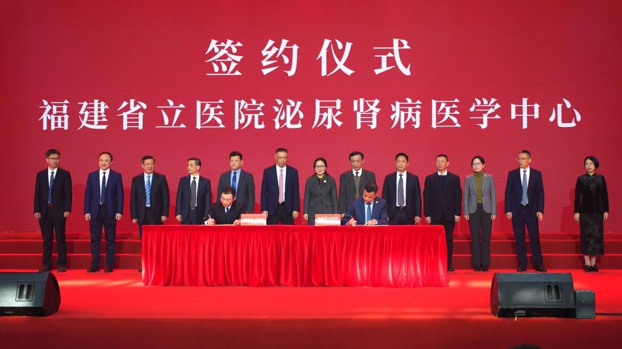 ▲陈刚院长与14个医学中心主任签署《福建省立医院临床医学中心主任工作责任书》