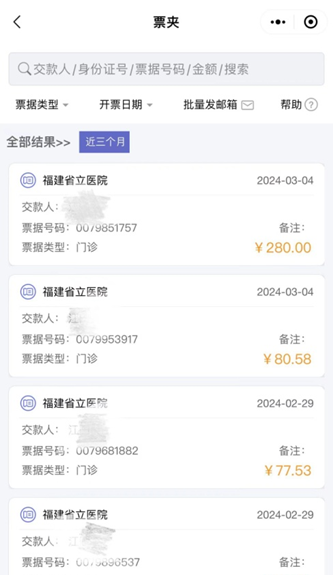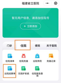 此外,门诊患者就医后在自助机结算时也可进行实时发票查询服务,或通过“福建省立医院”微信公众号线上查阅发票明细及详细清单。