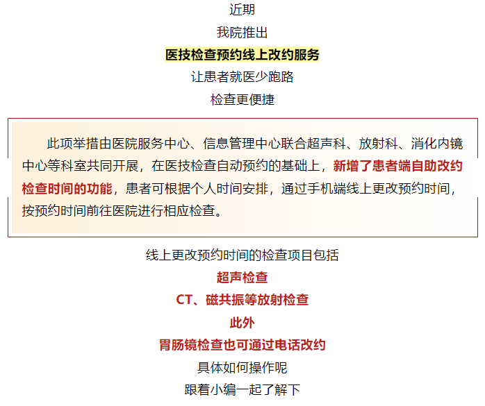 【省立服务】预约的医技检查想改时间?线上自助改约功能来啦!