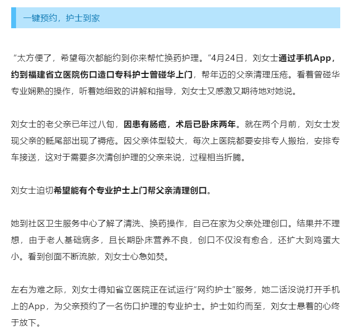 重磅!福建首个三甲医院“网约护士”来了!一键预约上门服务,还能用医保!