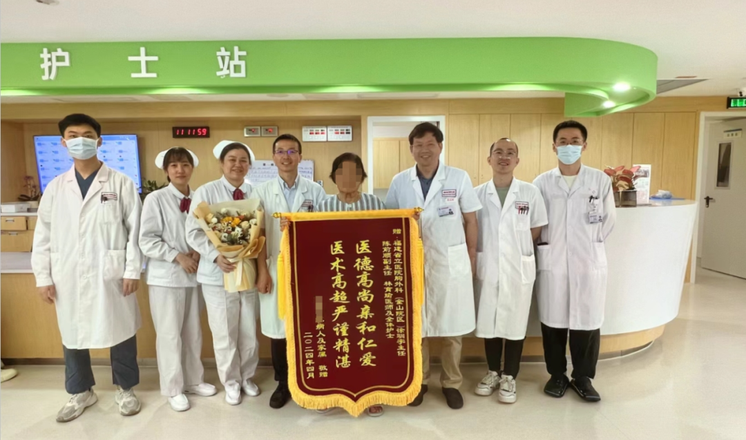 我院胸部医学中心徐驯宇主任医师、陈前顺副主任医师、林育瑜医师团队实施了“外科切除+热消融”结合的杂交手术,仅用时10分钟就将肿瘤消灭了,术后,何奶奶恢复良好,顺利出院。