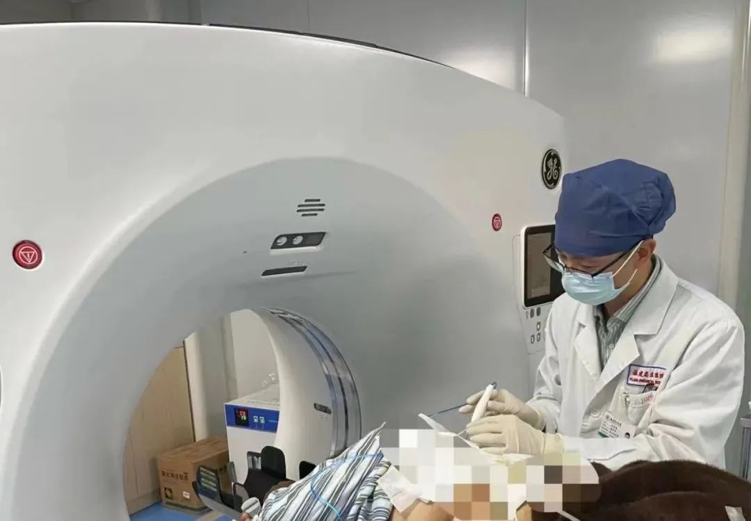第二步,陈前顺副主任进行CT引导左上肺肿瘤热消融,整个过程仅耗时10分钟。