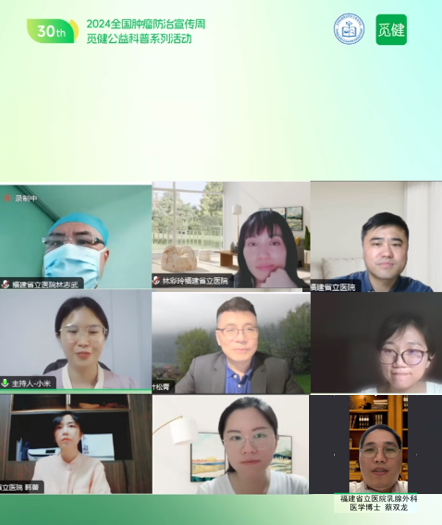 团队成员张辉、韩蕾、王瑞娟、林彩玲四位副主任医师分别对乳腺癌诊疗做了深入浅出的精彩介绍。蔡双龙博士、曾焕虹博士和大家分享了围手术期的注意事项,从术前基础疾病的管理、心肺功能的调节、饮食方面的注意事项到术后康复、疼痛管理等,从细节上告诉大家,如果经历一次乳腺癌手术,自己可能会面对的问题及解决方式。林志武主任医师和观看直播的观众朋友们进行直接互动,为大家答疑解惑,回答了观众朋友们提出的各种关于乳腺疾病的问题。