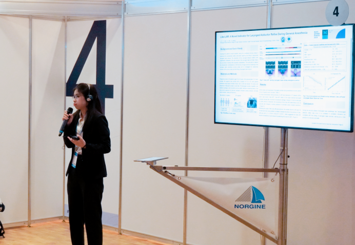 在读硕士研究生余丽珠分享喉罩麻醉苏醒期喉内收肌反射实时恢复过程的观察性研究结果。
