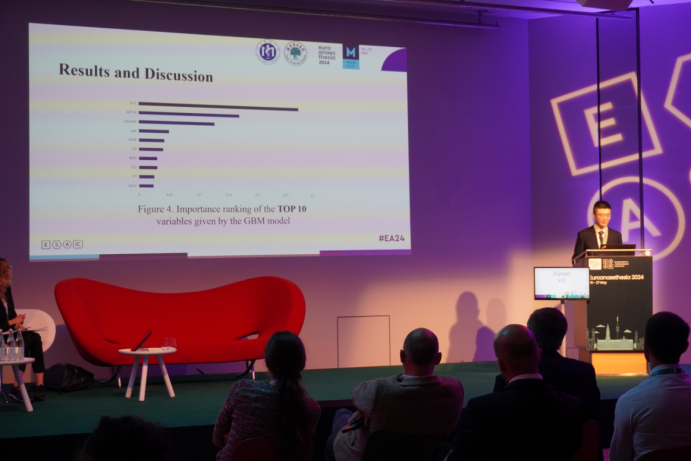 欧洲麻醉学会年会是全球麻醉学和重症监护领域最重要和最有影响力的年度大会之一,拥有来自100多个国家的国际参与者和 130多家参展商参会。大会讨论内容涵盖麻醉学、重症监护医学、疼痛管理、围手术期医学和危重急诊医学等领域最新相关知识。麻醉医学中心团队成员受邀参加会议并进行学术交流,在读博士研究生谢希源的口头报告获得了年会最佳论文摘要竞赛第三名。