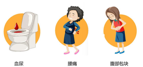 血尿:当癌灶侵入肾盏或肾盂时,患者会突然出现肉眼血尿的症状,呈间歇性、不伴疼痛、可自行停止且反复发作等特点。