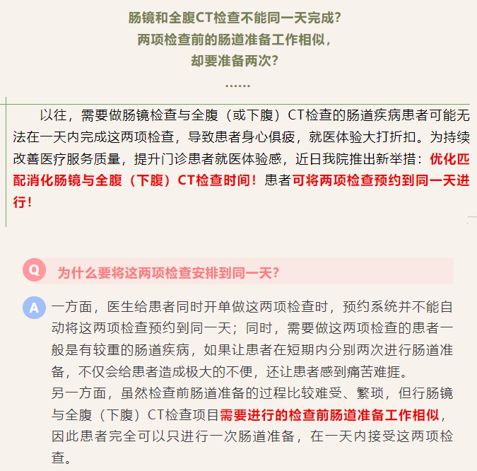 【改善服务】肠镜加CT检查同日安排——流程优化系列
