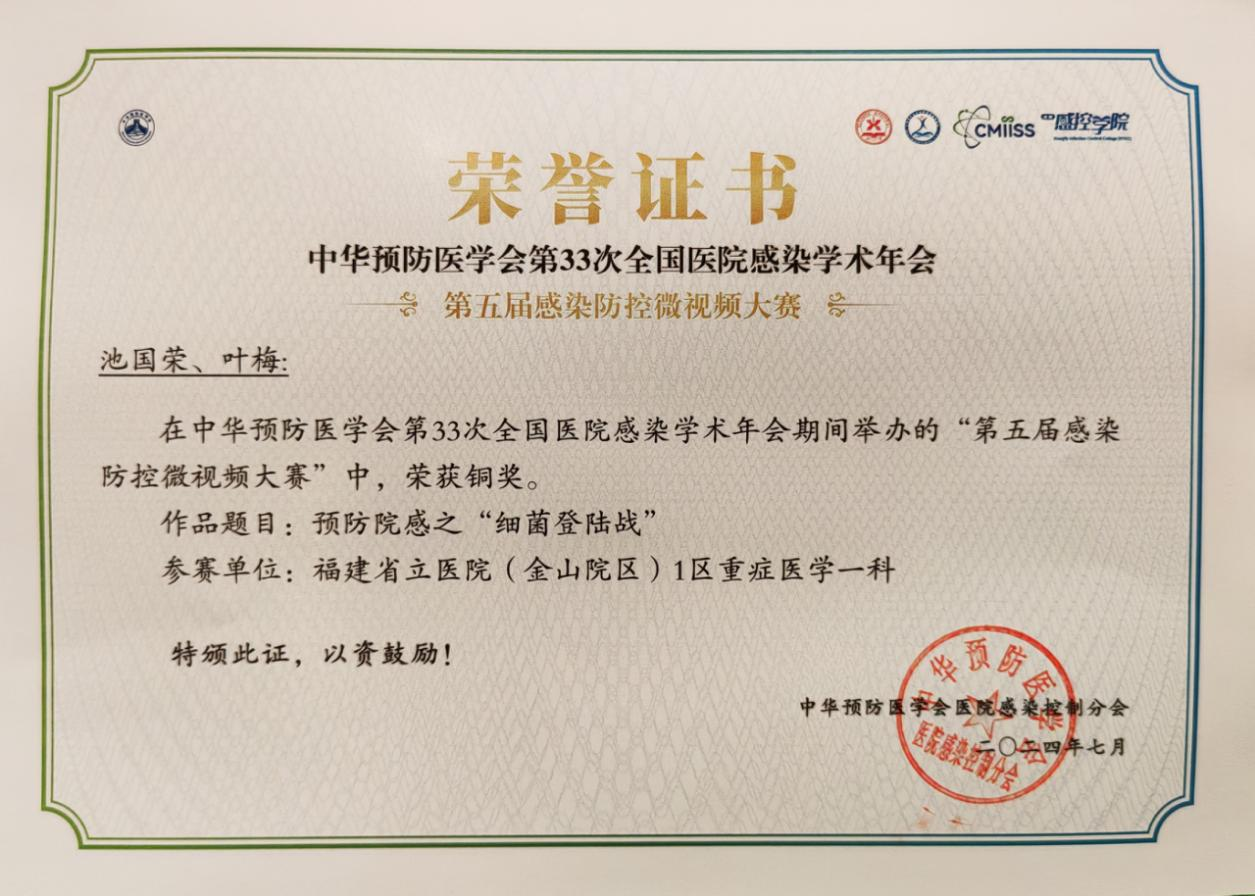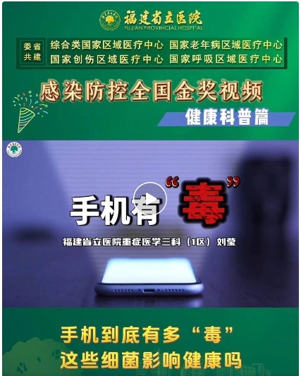 近日,在中华预防医学会第五届“感染防控微视频大赛”全国总决赛中,由我院医院感染管理部选送的多个作品斩获佳绩。其中,重症医学三科(东街院区)参赛作品《手机有“毒”》从1129份参赛作品中脱颖而出,荣获金奖。
