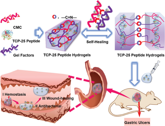 临床中,伴发急性或慢性出血的胃溃疡存在显著的致死风险。而在胃溃疡出血中实现快速止血和伤口愈合的有效开发,是一个巨大的挑战。