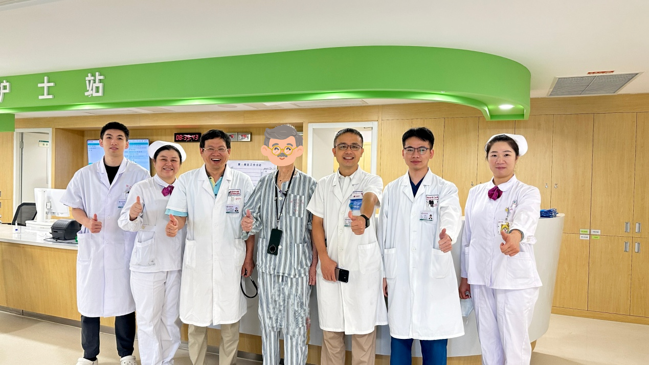 手术后王依伯在重症医学科的精心照顾和严密监护下,顺利转回了普通病房。经过半个月的调养,王依伯终于可以经口吃一些半流质了。重新获得进食机会的王依伯不由自主地向整个治疗团队竖起了大拇指。