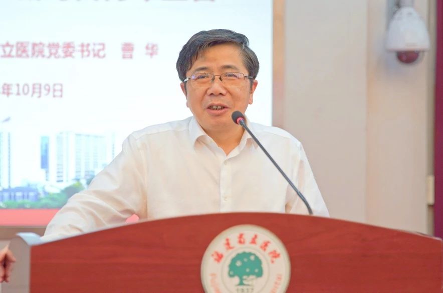 党委书记曹华教授以《以玉之德操 做新时代青年医者》为主题为新员工讲授入职第一课。