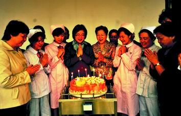 5月11日晚,院8号楼国际学术厅,300多名护士欢聚一堂,共同庆祝属于白衣天使的节日———“5·12”国际护士节。迎宾员给每位到场的护士递上一支康乃馨,送上一句节日的祝福。护理部主任王小芳主持庆祝活动。院党委副书记魏世超代表院领导班子对辛勤工作在护理岗位上的广大护士兄弟姐妹致以节日的祝贺,由衷称赞我院护理人员爱岗敬业、无私奉献的职业精神,感谢大家为医院发展所做出的贡献。而后,副院长李红向达到30年护龄的庄继红、李秋英护士颁发奖章。随着《爱的奉献》旋律响起,两名礼仪护士缓缓推出点燃蜡烛的心形蛋糕———这是院妇委员会为庆祝护士节特意定制的。望着燃烧的蜡烛,李红副院长带领大家默默许下心愿,祝愿我院护理事业蒸蒸日上,省立的明天更加辉煌。最后,参加庆祝活动的护士欣赏了由院工会安排放映的两场精彩电影。