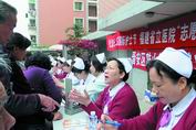 5月12日晨,由护理部王小芳主任、护理督导、护士长、专科护士及青年志愿者组成的志愿护理服务队一行18人带着血压计、血糖仪及健康教育宣传资料来到福州市晋安区鼓山镇文华小区,在晋安区中医院协助下,开展慢性病护理和康复护理服务,为社区居民免费测量血压和血糖,提供咨询指导,共测量血糖180人次,测量血压350人次,现场咨询500人次。志愿护理服务队还举办两场健康知识讲座,分别由高血压专科林秀铭副主任护师、糖尿病专科林娟副主任护师主讲。两位专科护士深入浅出、幽默风趣的讲解及图文并茂、通俗易懂的讲座内容深深吸引了现场听众。结合讲座内容,活动发放健康教育宣传资料1000多份及药盒、盐勺、油勺等百余件,鼓励居民从改变生活方式开始,预防疾病发生,延缓疾病进展。