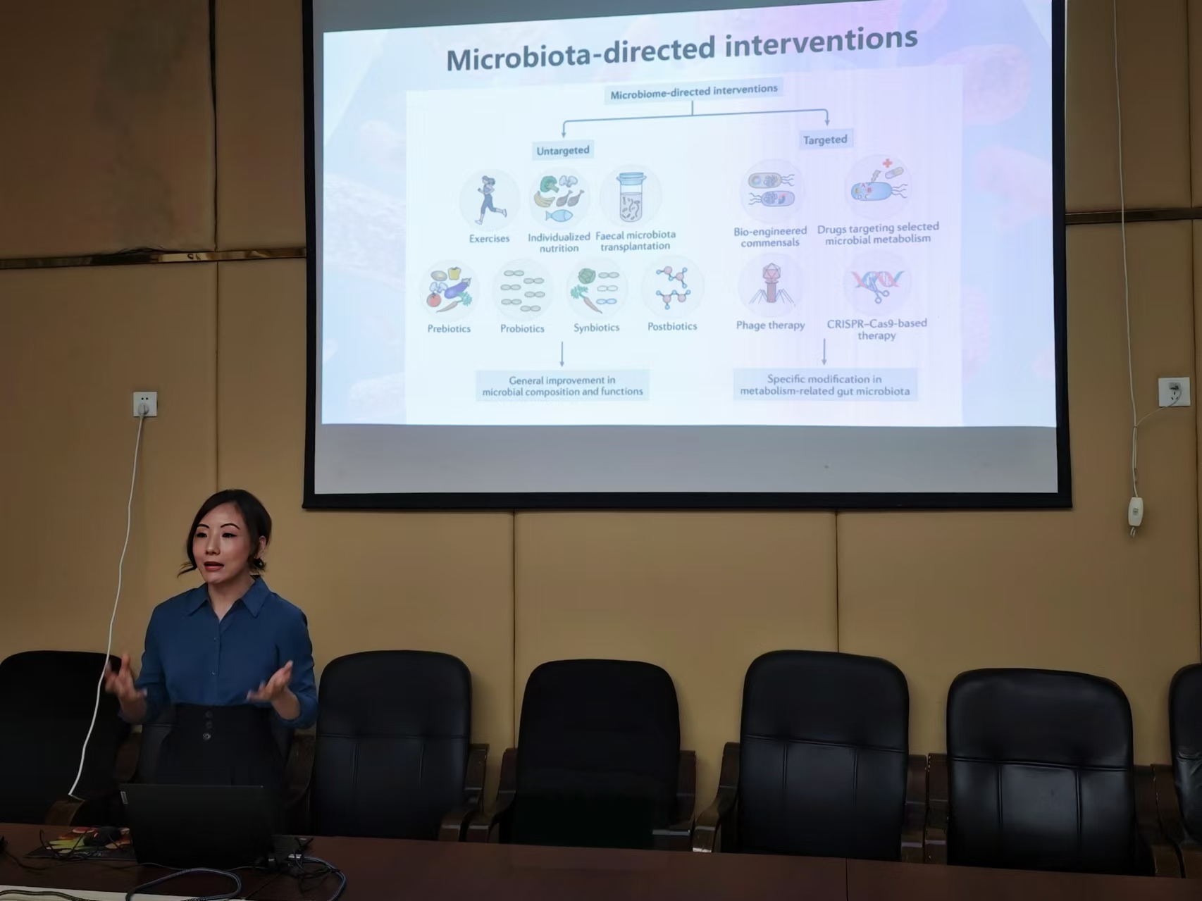 本次讲座的主题为“Microbiome for Modulating Human Metabolic Diseases”。讲座中,张教授阐述了肠道菌群的重要性及其调控方法并探讨了肠道菌群在维持宿主健康、疾病发生以及慢性疾病治疗中的核心作用和调控机制。她系统地介绍了当前国际上关于肠道菌群研究的主流方向,并提出通过饮食干预和运动等手段可以调节肠道菌群结构和功能,为慢性疾病的治疗和预防提供了新见解。她强调了通过大人群、大样本研究来揭示真正菌群规律,指出机制研究、宿主调控菌群以及临床干预在精准调控肠道核心菌群,改善慢性疾病中的重要性。