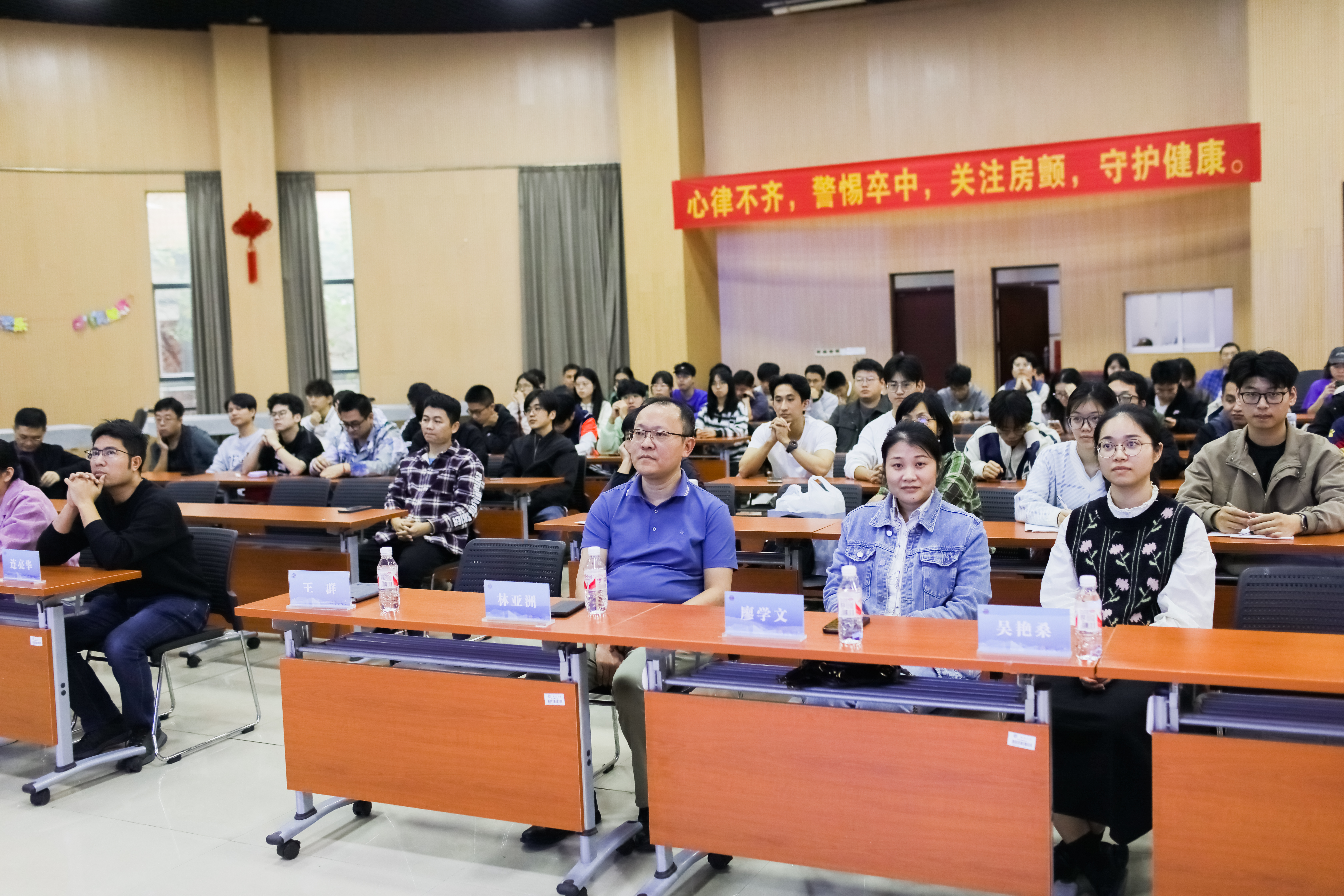活动由福州大学校工会常务副主席王群主持,福州大学物理与信息工程学院电子信息教工党支部书记杨明静、电子信息工程系系主任黄立勤、福州大学物理与信息工程学院工会主席兼数字媒体技术系主任陈思喜出席活动。活动伊始,林亚洲支部书记就房颤的发病机制、诊断标准和治疗方案等核心内容进行科普讲座。从心悸、胸闷等常见表现到一些容易被忽视的细微症状,都一一列举并详细解释,通过生动的案例和深入浅出的讲解,让师生们对房颤有了更全面的认识,现场群众互动积极热烈。