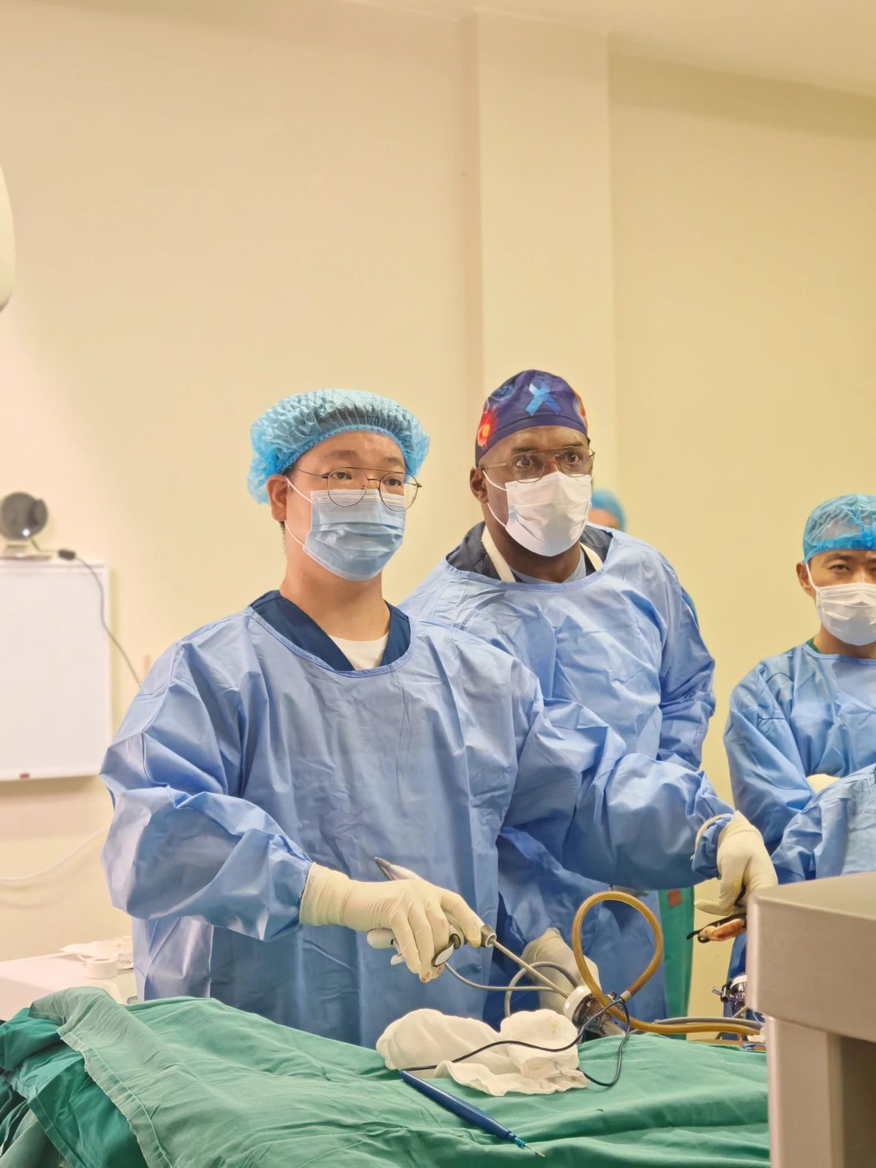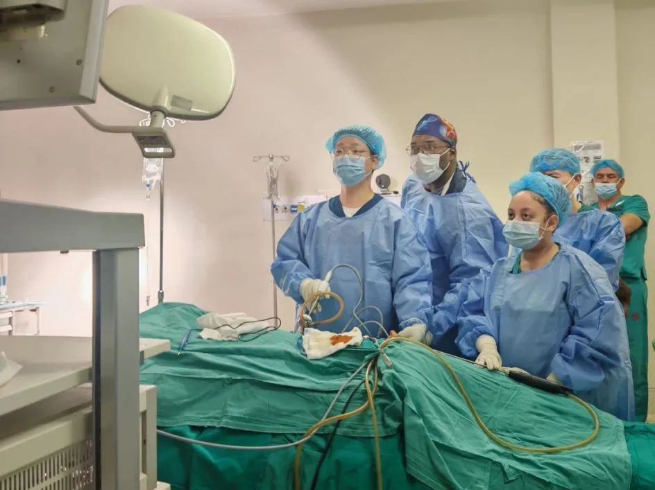 近日,第17批援博医疗队弗朗西斯敦分队的分队长、我院泌尿外科胡敏雄医生在博仰加圭转诊医院成功开展了该医院近十年来首例腹腔镜下肾盂切开取石术