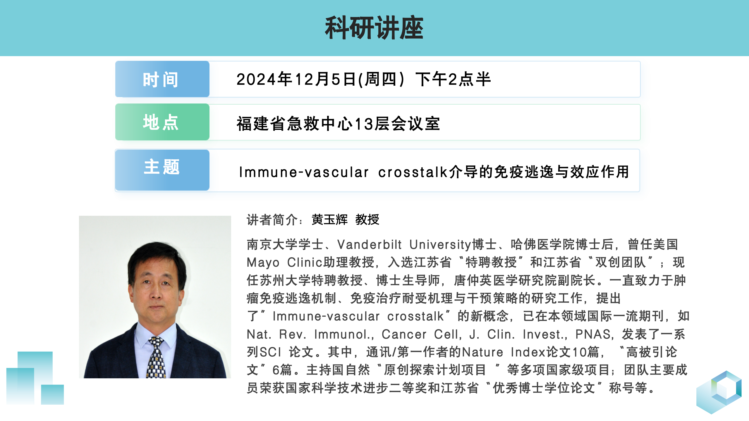 讲座通知:lmmune-vascularcrosstalk介导的免疫逃逸与效应作用