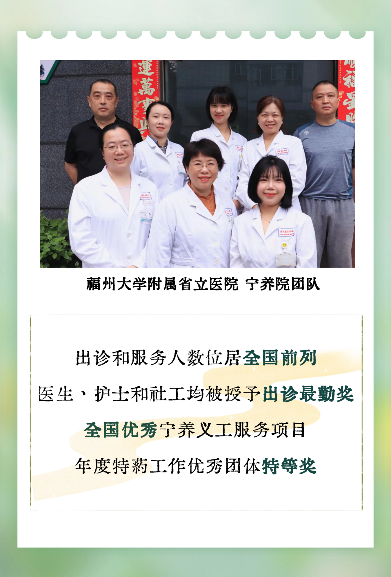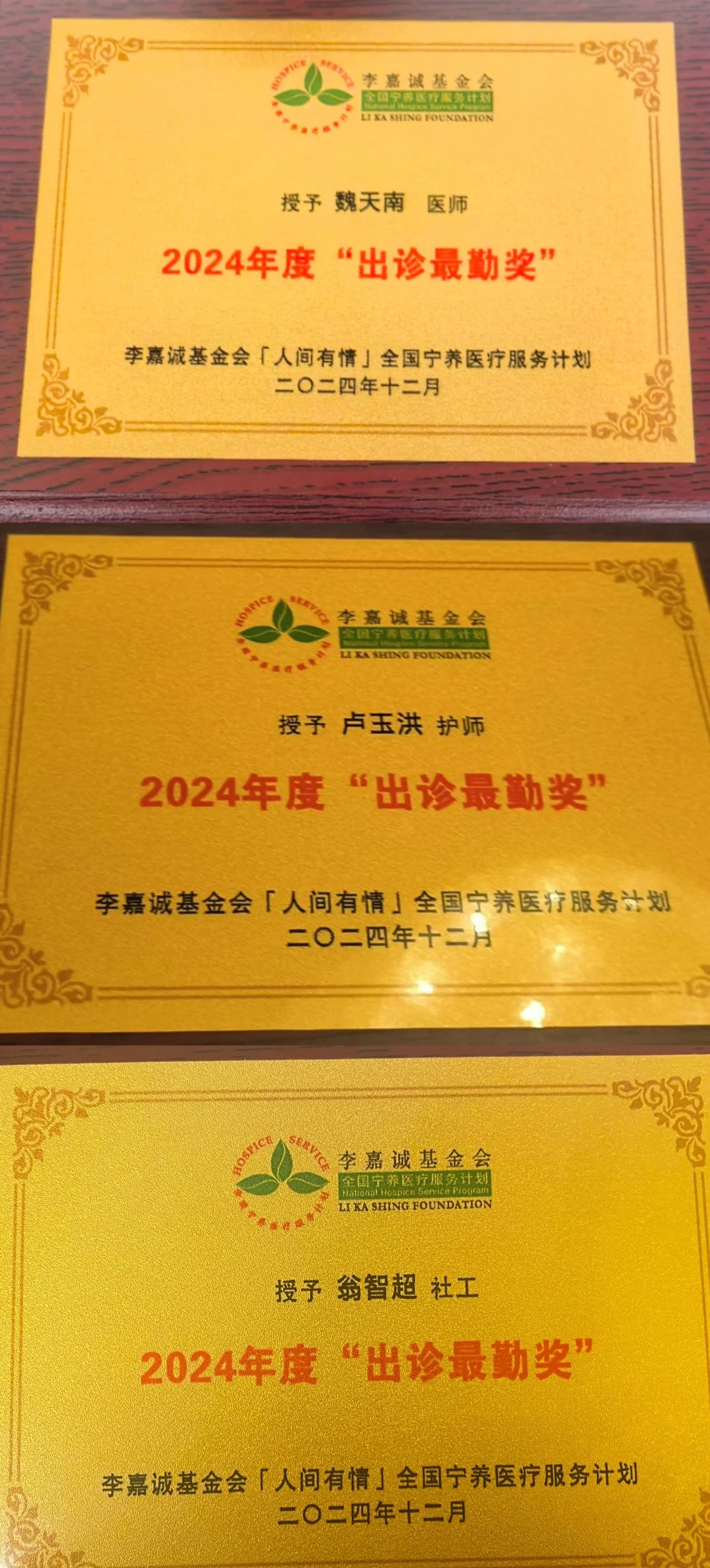 今年1-10月,宁养院新服务病人数位居全国各家宁养院排名第五;魏天南医师、卢玉洪护师、翁智超社工分别获得全国医师、护理、社工类“出诊最勤奖”。这个朴实无华的奖项,是对宁养院工作的最高认可与鼓励。