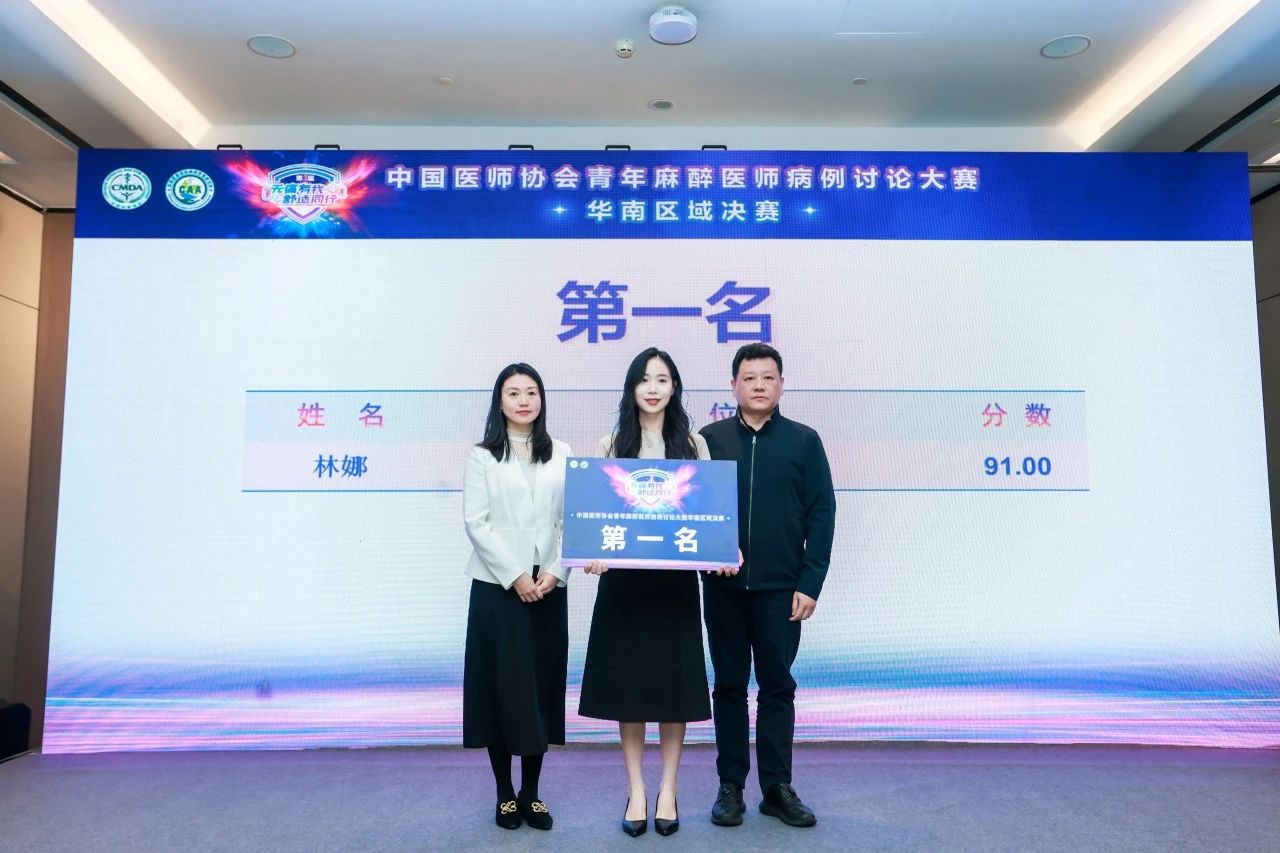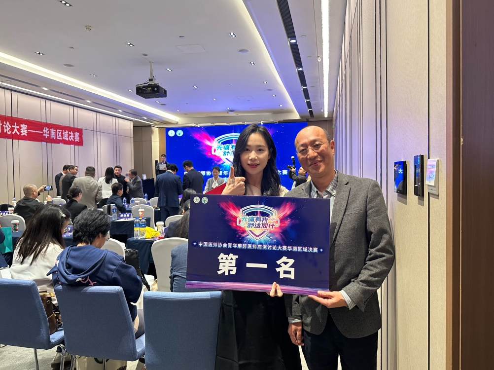 近日,在中国医师协会麻醉青年医师病例讨论大赛华南区域决赛中,我院麻醉医学中心青年医师林娜凭借对该病例的严谨剖析,与导师蒋俊丹主任医师的默契配合,荣获本次华南区域决赛第一名!