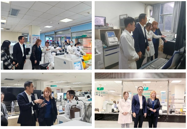 在我院检验科,工作人员向Tomris Ozben教授展示了我院检验科所承担的检测任务,包括每日处理的检测量,并详细介绍了检验科提供的一系列检查项目,涵盖了血液、尿液、免疫和生化等常规检测,以及一些特殊的检验项目。检验科所配备的先进设备不仅提高了检测的准确性与效率,还显著减少了患者的等待时间。检验科遵循ISO 15189标准,实施严格的质量控制流程,并通过优化工作流程和提升自动化水平来应对日益增长的检测需求。