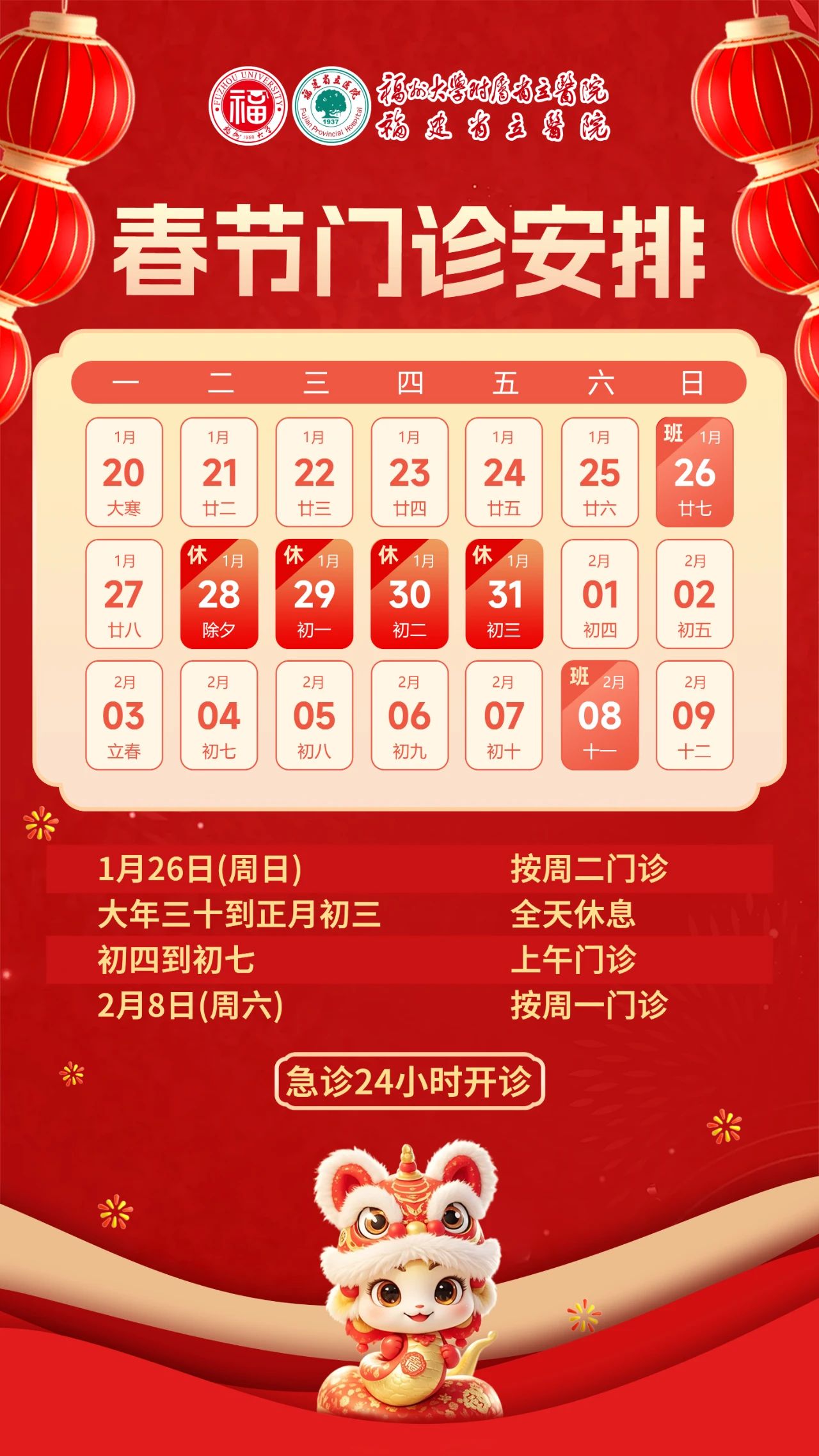 【就诊须知】福州大学附属省立医院2025年春节门诊安排