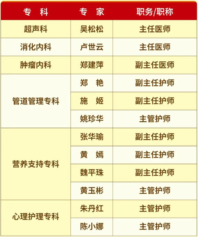 管道管理专科、营养支持专科